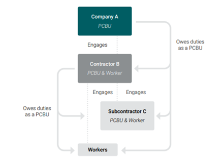 The following figure shows who may owe duties as PCBU in a contractual chain: